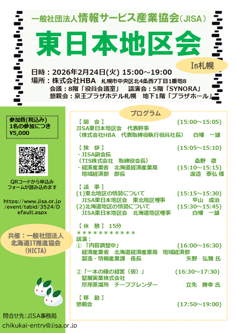 令和7年度 JISA東日本地区会を札幌市にて下記のとおり開催いたします。